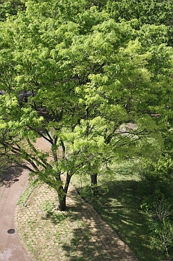| 引っ越し・その 1 〜大きな木編〜 中学時代、図書館の自習室で気に入りだった席は、 大きな木が見える窓際の席でした。 11年前、愛知からこちらに出てきて住んだアパートは 小さな公園に面していて、窓の外に5本の大きな木がありました。 そして、先週引っ越してきた家の窓の外。 やはり、大きな木があるのでした。 しかも、私がいちばん大好きな欅(けやき)の木。 すぐ近くには欅の並木道もある。 4年越しで思い焦がれていたのは、 この風景だったのです。 ※新緑が眩しい気持ちいい季節。 ここからまた始まるのです。 26. April 2009 |