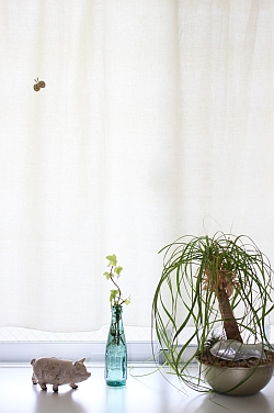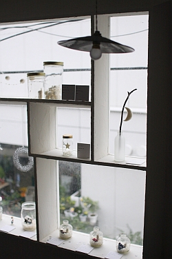 | 引っ越し・その 2 〜雑貨編〜 前に住んでいたアパートは、物が増えに増えてしまい、 せっかく気に入りの雑貨もひどい扱いになっていたのですが、 今回の引っ越しでやっと少し「浮かばれる」子たちがお目見えです。 ブタの貯金箱は、昔働いていた雑貨屋のスタッフから 誕生日に頂いたもの。 真ん中の瓶は、東郷神社の骨董市で見つけたもの。 「ぞろん」とした植物は、ボールごとD&Departmentで購入したものです。 かっこよく飾ってあげられて嬉しい嬉しい。 これを機に(?)、私もすっきりした人間になりたい。 なりたいなりたい。 でも、なかなかだ・・・。 ※キッチンの窓辺。左上のちょうちょは 昨日、高円寺ninniさんにて購入。 2. May 2009 |