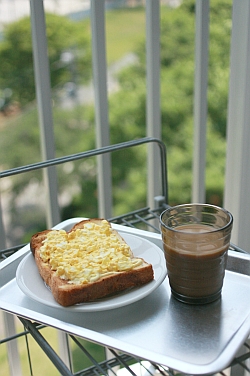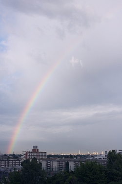 | 引っ越し・その 3 〜ベランダ編〜 こぐれひでこさんの名著「ごはん日誌」を読んで以来、 10年越しで憧れていたのは、ずばり 「ベランダで朝食を食べたり、お酒を飲んだりすること」でした。 (こぐれさんの場合は”テラス”ですが) しかし、前のアパートのベランダはとても小さく、 2階だったし、目の前が駐車場だったこともあり、 とても「気持ちよく」楽しめるようなものではなかったので、 それは夢のまた夢でした。 ・・・が、今回引っ越した家は、少しだけ広いベランダになり、 しかも8階なので、外からの目があまり気にならない& 見える景色もわりと緑多めなので、 いよいよ「ベランダ・ライフ」をenjoyできるのでした。 とりあえずやってみたのは、 「ベランダでビール」と「ベランダでアイス」。 そのうち「ベランダで制作」もあるかも。 でも、フェルトが軽すぎて飛んで行ってしまうかもしれないので、 やはりそれはないか・・・。 ※5月8日には大きな虹を見ました。広角レンズでなかったので 写り切っておりませんが、、、完全なる半円の立派な虹でした。 2. May 2009 |