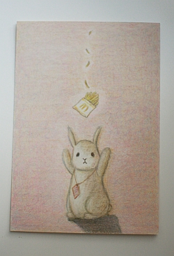 「夏の思い出」を描く 8月に自由帳ギャラリーで開催された ポストカード展に出展した作品がこちら→ タイトルは「希望の朝」といいます。 展示テーマは「夏の思い出」ということで こんな絵になりました。 ・・・わかりにくいですよね。 ということで この場を借りて解説させて頂きます。 Sallyは何をしているのかというと 「ラジオ体操」をしているのです。 首から下げてるのは ラジオ体操の出席カード。 私が小学生だった頃 夏休みのラジオ体操に参加すると カードにスタンプを押してもらうのですが 毎日ちゃんと出席するとそのカードが 「マックフライポテトSサイズ」の引換券になるのでした。 早起きがイヤでイヤでイヤでたまらなかった私は まさに「ポテトのために」がんばって参加していたのです。 普段マクドナルドに連れて行ってくれるような親ではなかったので ものすごいチャンスでもあったのです。 というわけで 降り注ぐマックフライポテト 背景は薄赤く 足元に影が伸びるのは 朝焼けを表していたりします。 タイトルの「希望の朝」はもちろん あ〜た〜らし〜い あ〜さがきた き〜ぼ〜お〜の〜 あ〜さ〜だ♪ というラジオ体操の歌から。 我ながらくだらない絵を描いたものだ とは思いますが 結構気に入っていたりします。 <Today's Photo> 「意図した時に現実化が起こる」を描いた絵でもある ・・・というのはジョークですが。 4.September. 2011 ・・・・・・・・・・・・・・・・・・・・・・・・・・・・・・・・・・・・・・・・・・・・・・・・ 「Sallyのフィンランド通信」 ヘルシンキよりお届け。 ![]() こんにちは。フィンランド特派員のSallyです。 とってってとってもすてき!くすすすす。 ・・・・・・・・・・・・・・・・・・・・・・・・・・・・・・・・・・・・・・・・・・・・・・・・・・ |