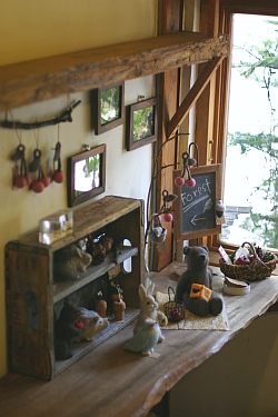 展示場所は、窓からやわらかな光が差し込む1Fのカウンタースペースでした。 HATTIFNATTさん全体に漂う木のぬくもり感、そして秋の森をイメージしながら 制作しました。 足を運んでくださった皆様、本当にありがとうございました。 皆様の中にほんの少しでも「森」を感じていただけたら、嬉しく思います。 ©2004- Sleepy Sheep ; Soap. ALL RIGHTS RESERVED. |